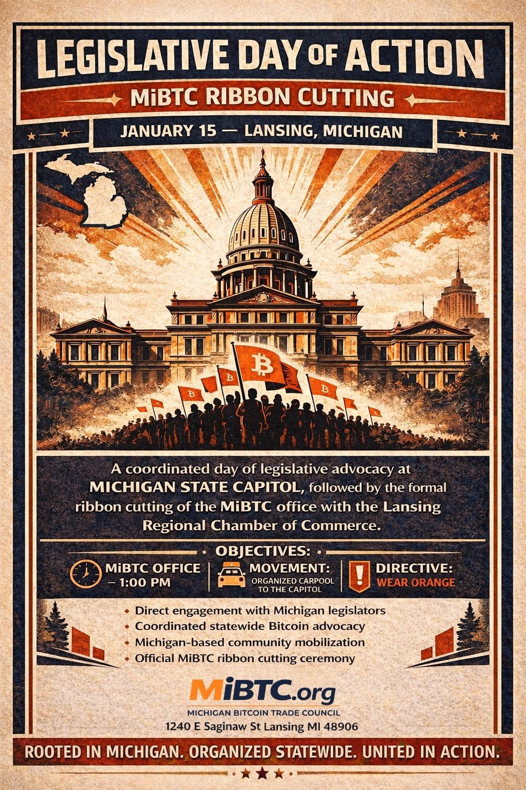 Policy is shaped by those who show up. This is your opportunity to help influence Michigan’s Bitcoin future—and celebrate a big step forward for the Bitcoin community in our state.